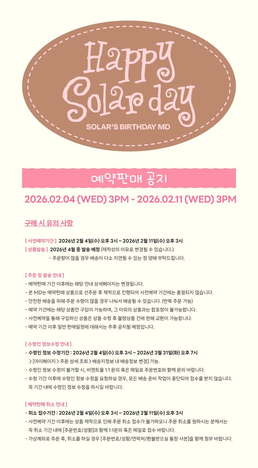 2026 SOLAR'S BIRTHDAY MD 관련하여 안내 말씀드립니다.